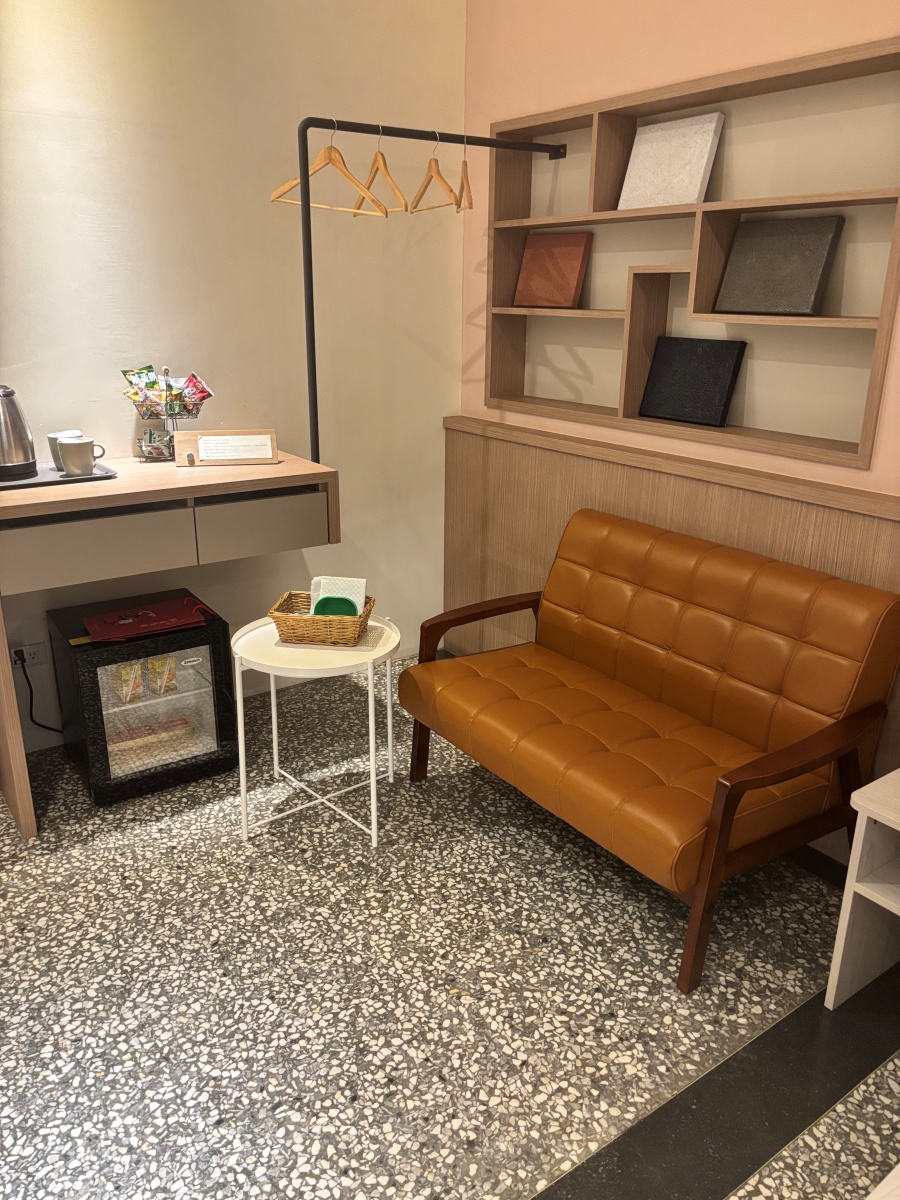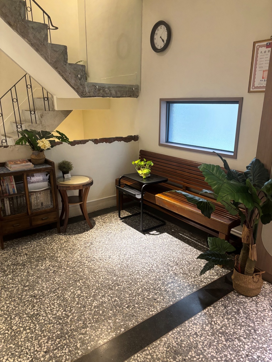民宿的每層樓都有廣大的公用空間,這裡融合了時尚與復古的氛圍,保留部分老宅的泥作紅磚還有磨石子地板搭配上公共空間的古董傢俱,走進義旅舍立刻勾起以前回到長輩家暖暖的回憶。