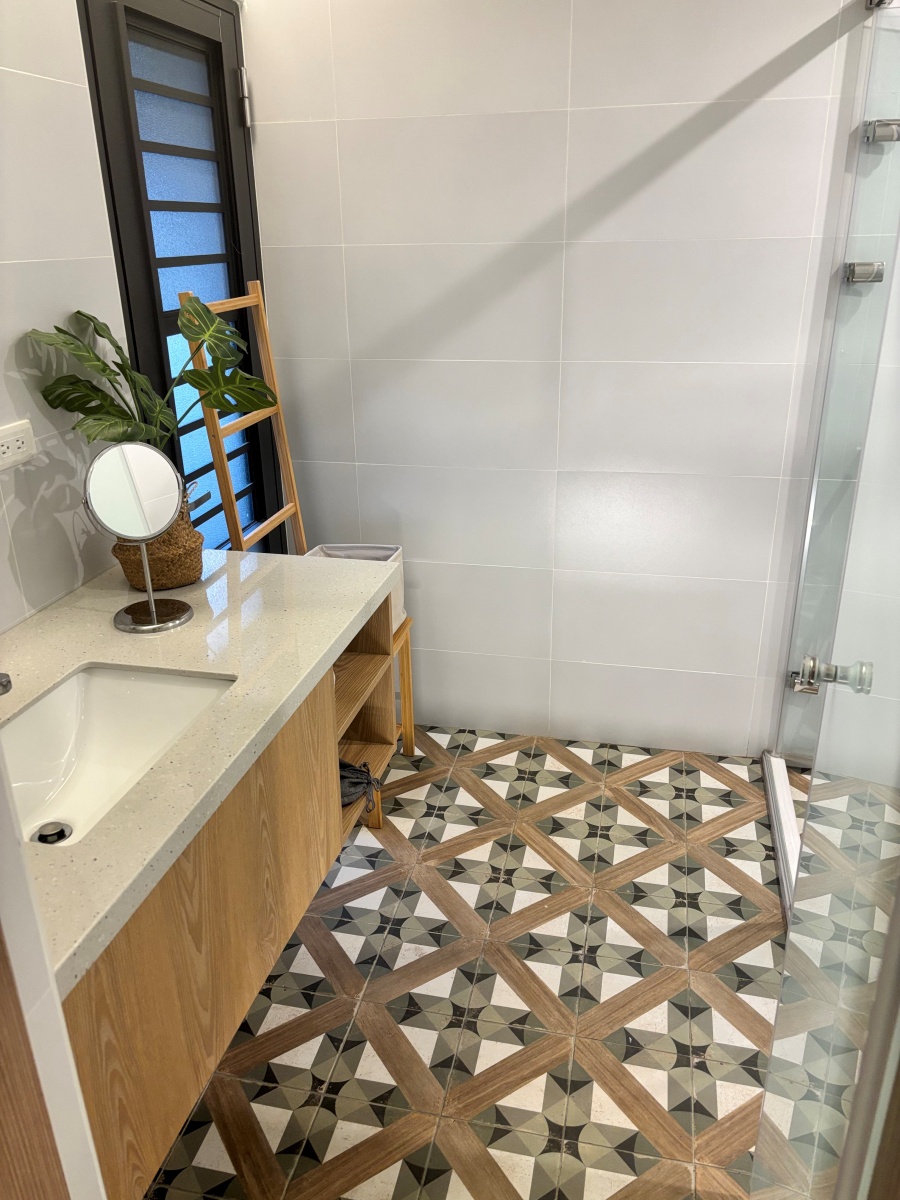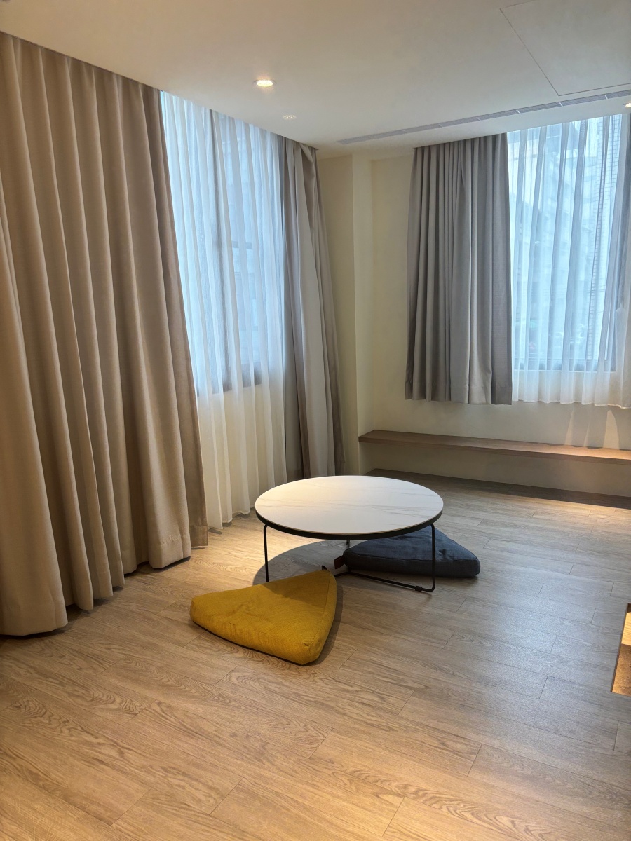 走進房間暖色調的牆面與沙發、舒適的雙人床,木紋地板寬大的和室空間發呆區讓人直接就想賴在裡面不出門,乾濕分離的浴室淺色牆面搭配暖色系花紋地磚都可以看出民宿主人的品味與用心,在義旅舍除了床,每個空間都能讓毛小孩盡情活動,可以一起窩在沙發看電視也能一起倒地翻滾。