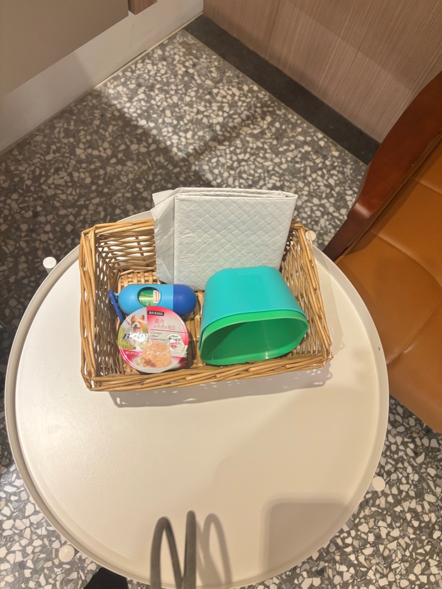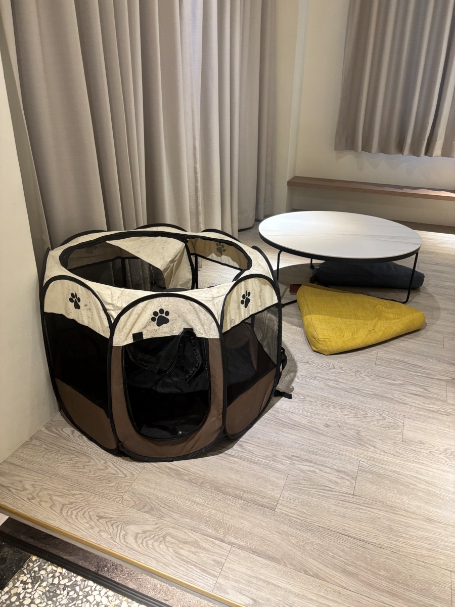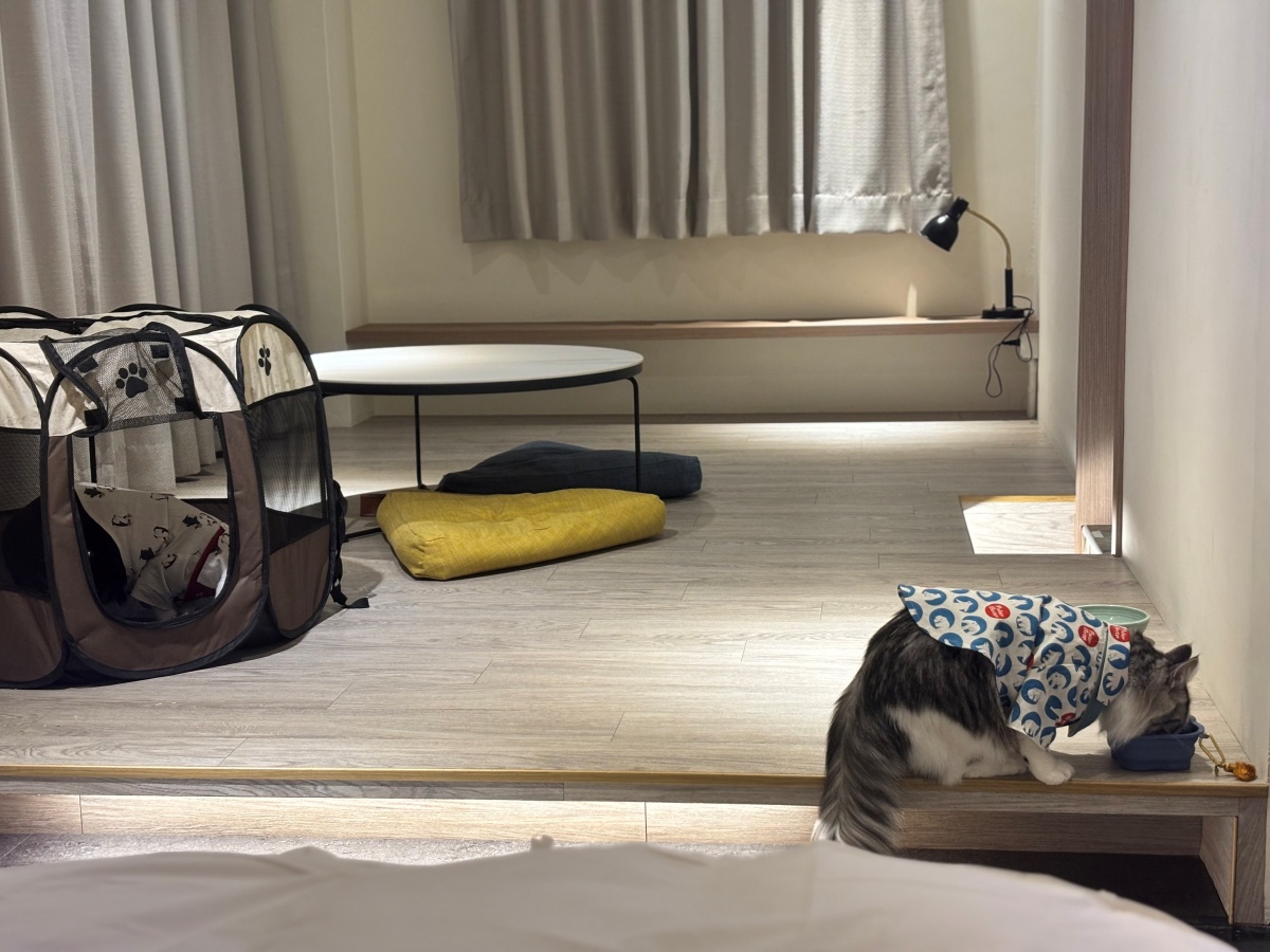 除了基本的餅乾茶包小點心,攜帶毛孩入住的旅客民宿也會幫毛小孩準備碗、撿便袋、尿布墊、罐罐,寬大的發呆區就是毛孩最愛的地方,放上毛孩習慣的睡窩跟玩具直接成為他們最快樂的空間。
